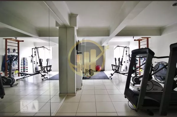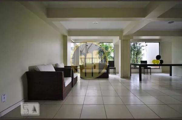 O condomínio com portaria 24hrs, 1 vaga de garagem e salão de festas.