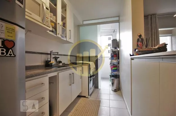 São 2 dormitórios, sendo 1 banheiro, cozinha aberta com cooktop, forno elétrico.