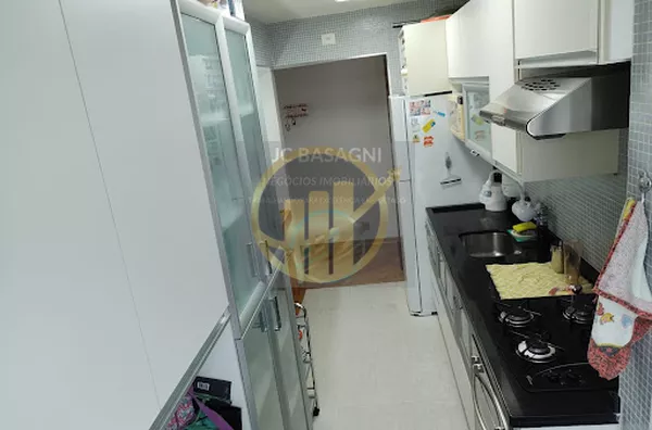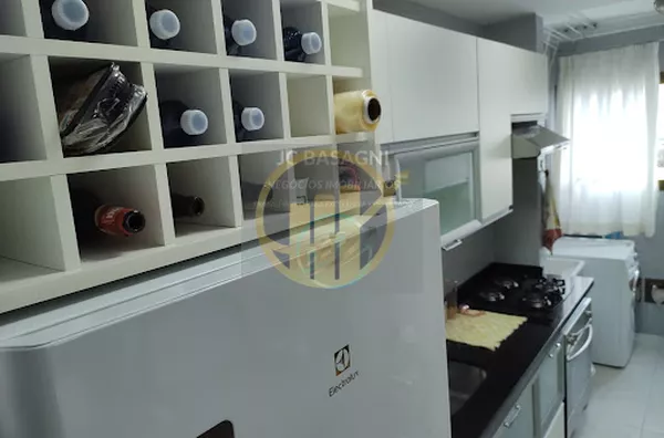Ótimo apto. com 2 dormitórios, sala, cozinha, banheiro, 1 vaga de garagem, lavanderia, o apartamento tem armários embutidos nos quartos, na cozinha e lavanderia, fica forno elétrico, Cooktop, rack, sofá, aparadeira, mesa e cadeira da sacada. Bicicletário, salão festa , churrasqueira, quadra pequena e espaço para fazer academia.