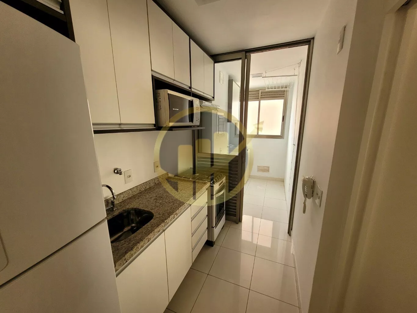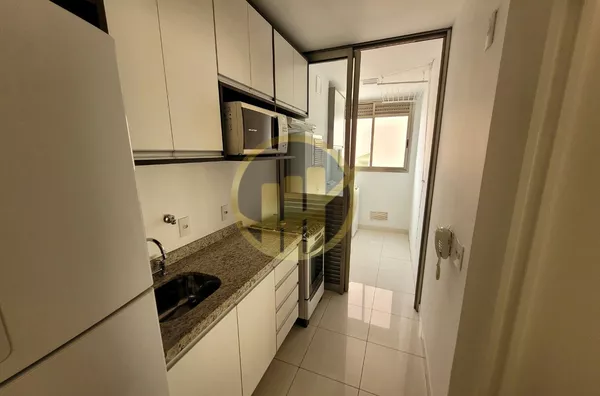 - Living para dois ambientes, varanda fechada com vidro integrada tanto com o quarto quanto com o living, cozinha, área de serviço, lavabo e 2 suítes.