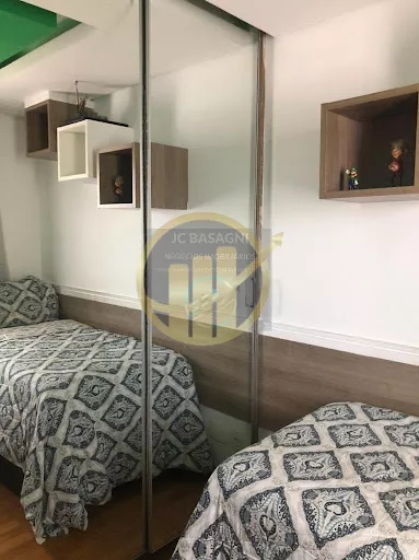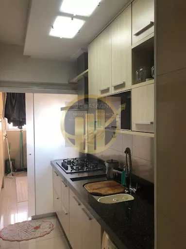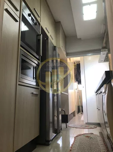 Apartamento 5° andar, 3 quartos com uma suíte e um banheiro social, uma área de despensa, armários embutidos na Suíte e Cozinha, duas vagas de garagem, elevador de serviço e elevador social, infraestrutura do condomínio com Academia, Piscina, Brinquedotec