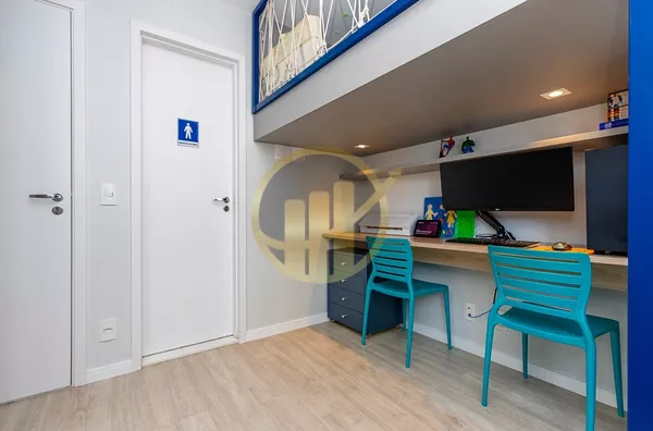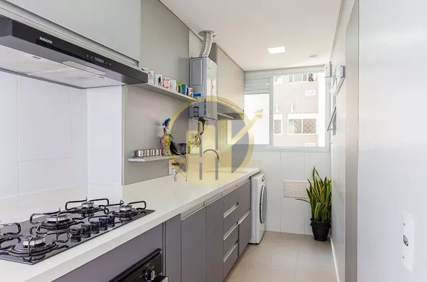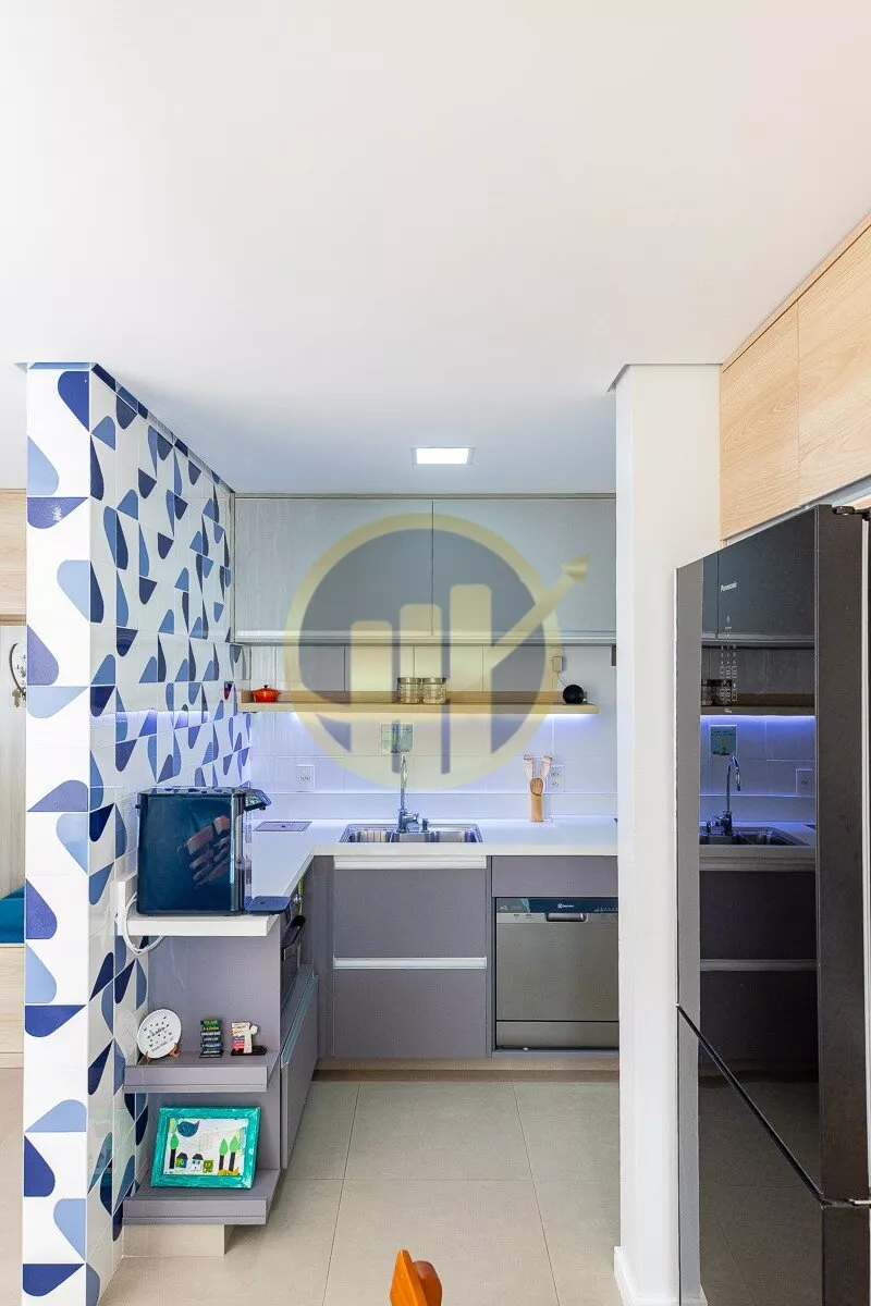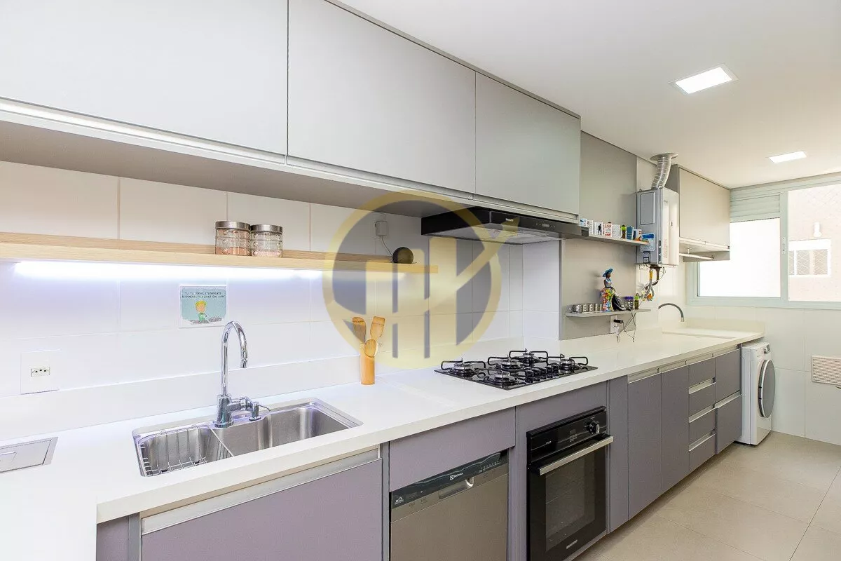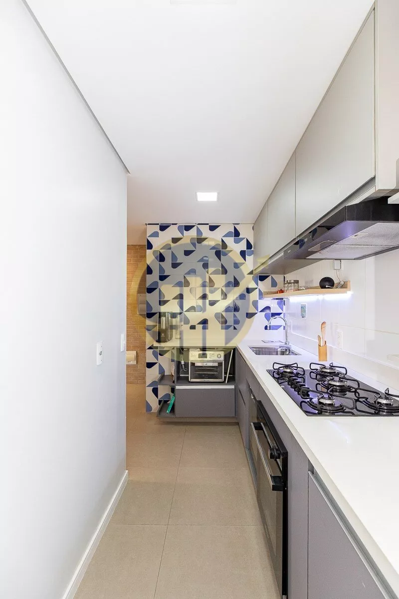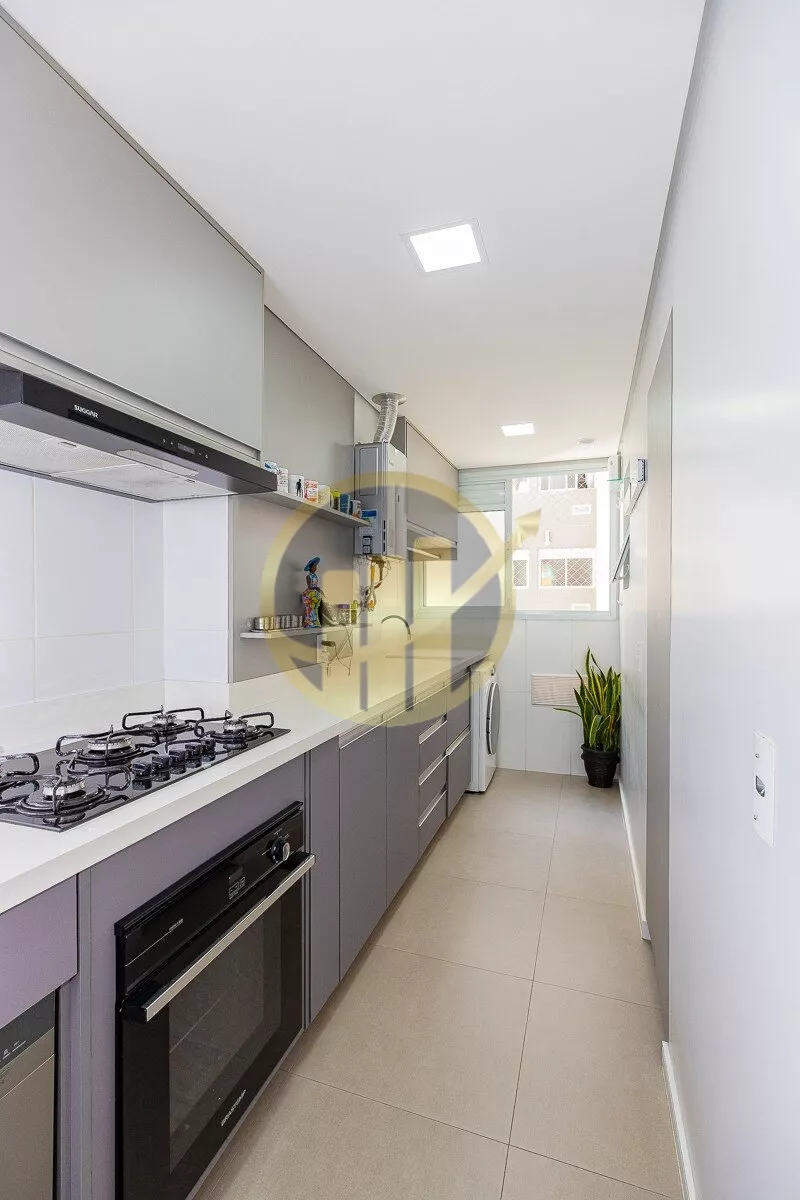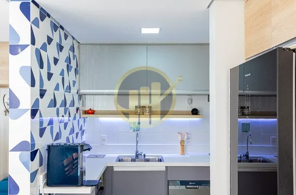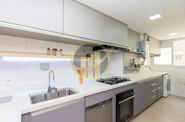 A cozinha americana,moderna e funcional, conecta-se à área de serviço de forma prática, otimizando o espaço e facilitando o dia a dia.