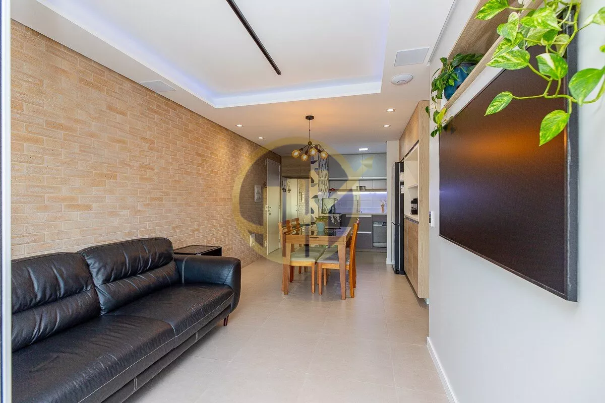 Este sofisticado apartamento de 83m² no Raiz Parque Resort traduz equilíbrio entre elegância, conforto e praticidade. Oliving para dois ambientes é amplo e harmonioso, ideal para receber com charme e acolhimento. A varandaenvidraçada, equipada com persianas automatizadas, se integra de forma fluida ao espaço social, oferecendo umambiente versátil e convidativo para momentos de relaxamento.