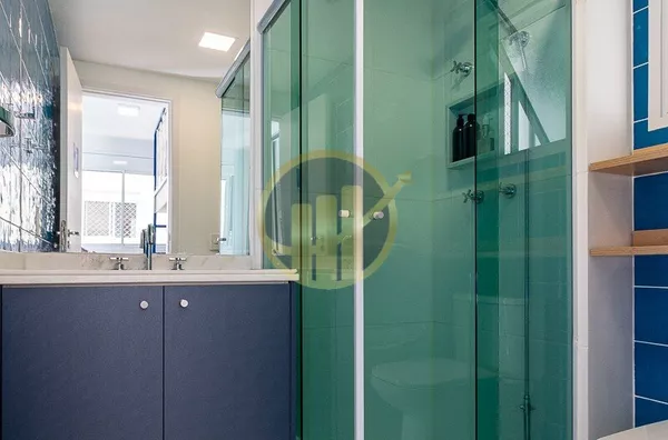 O apartamento dispõe ainda de um lavabo elegante, perfeito para atender visitantes compraticidade.