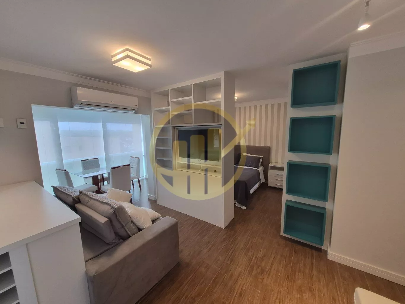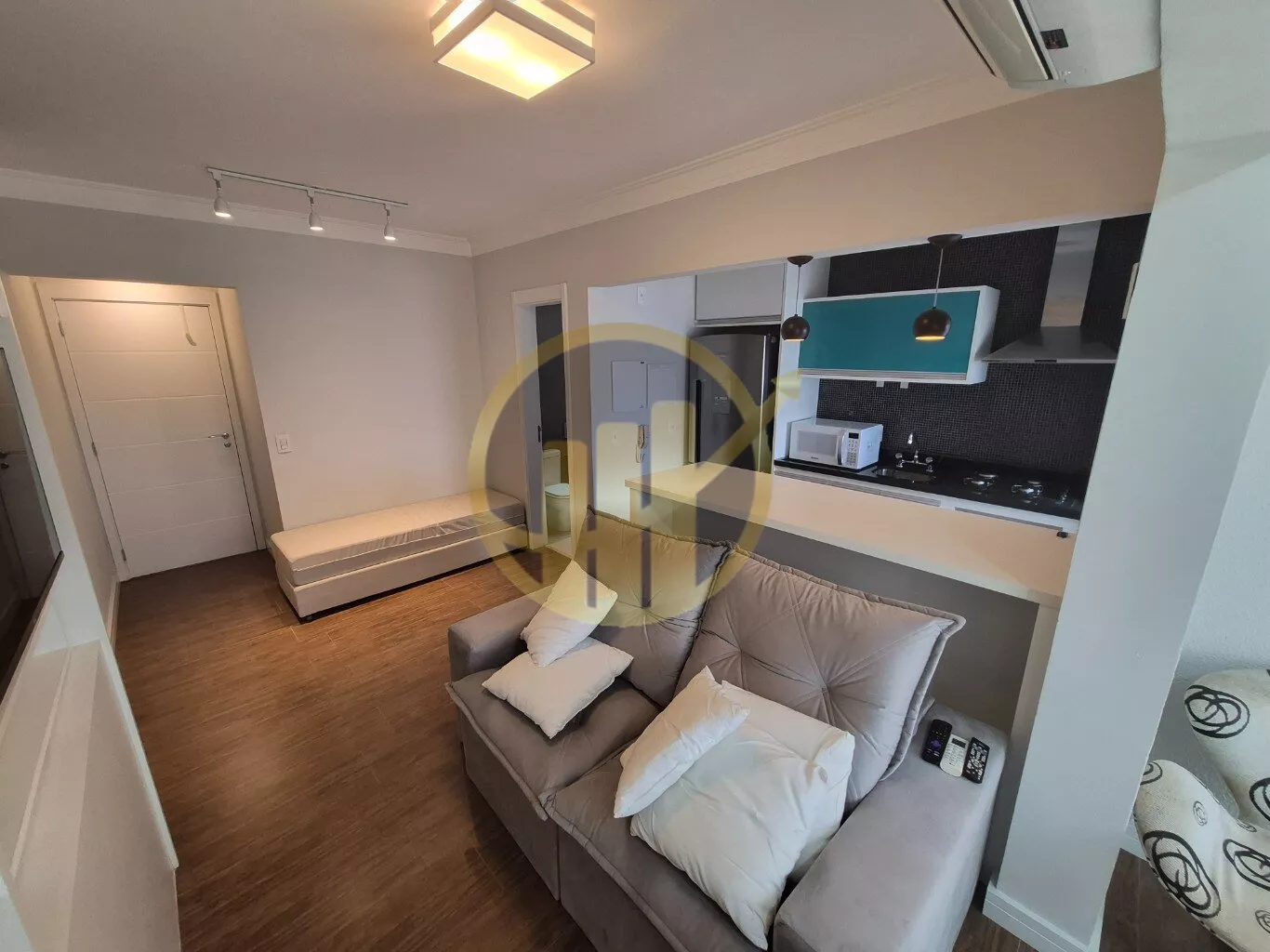 O imóvel conta com sala para dois ambientes integrada à varanda, cozinha americana planejada, dormitório com suíte e armários, além de área de serviço funcional. Fica em andar intermediário/alto (ajuste conforme o seu), com boa incidência de luz e sensação de privacidade. Por ser vendido mobiliado, é uma excelente opção tanto para morar quanto para investir e já colocar para locação.
